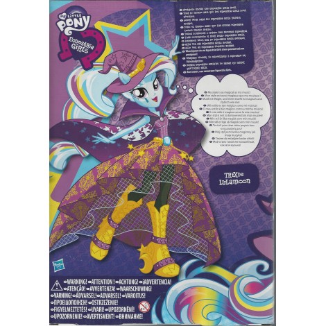 Look out as your kids will love this Trixie Lulamoon Equestria girls doll that looks just like the Trixie Lulamoon character Authentic Equestria doll from Hasbro that comes with an awesome magician’s costumer for your Rainbow Rocks Friendship fan.