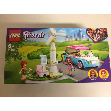 The colorful electric car toy fits 2 mini-dolls – Mia and Olivia – and there's space on the rear seat for puppy Elliot. Included in the set is a charging station that continues the green theme with its toy wind turbine and solar panel. Kids can then exit their pit stop leaving zero emissions in the air!