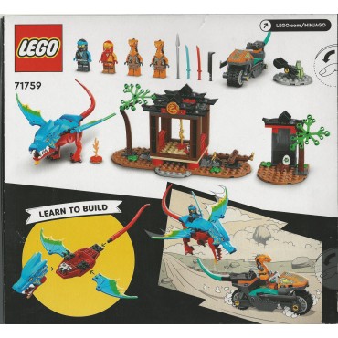 The set features a posable dragon, 2 ninja temples, 2 posable trees, a dragon’s egg and 4 minifigures: ninja Kai and Nya, and baddies Cobra Mechanic and Sneaky Snake.