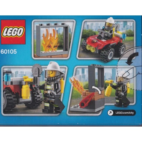 Play out firefighting adventures with the LEGO® City Fire ATV. This set includes a ruin section with window and a fire element that goes up and down via a lever on the side, along with a fire extinguisher and saw for the firefighter to use.