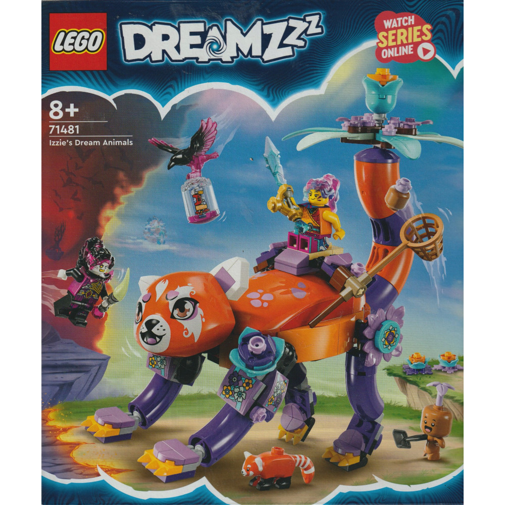 Questo set contiene 2 minifigure: l’eroina Izzie e il malvagio doppelganger Dizzy, più un personaggio da sogno e un mini-panda rosso.